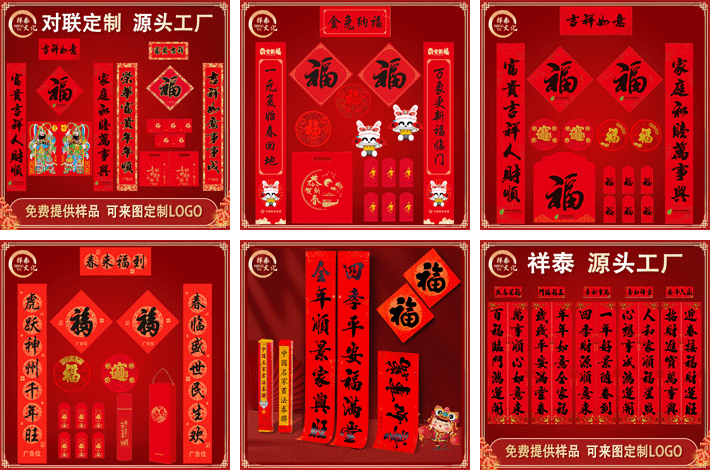 專業(yè)定制廣告對聯(lián)春聯(lián)、福字、窗花、紅包、禮包/禮盒。定制產(chǎn)品:植絨對聯(lián)、植絨福字、燙金對聯(lián)、彩印對聯(lián)、剪紙、利是封、紅包、彩印禮包、無紡布禮袋